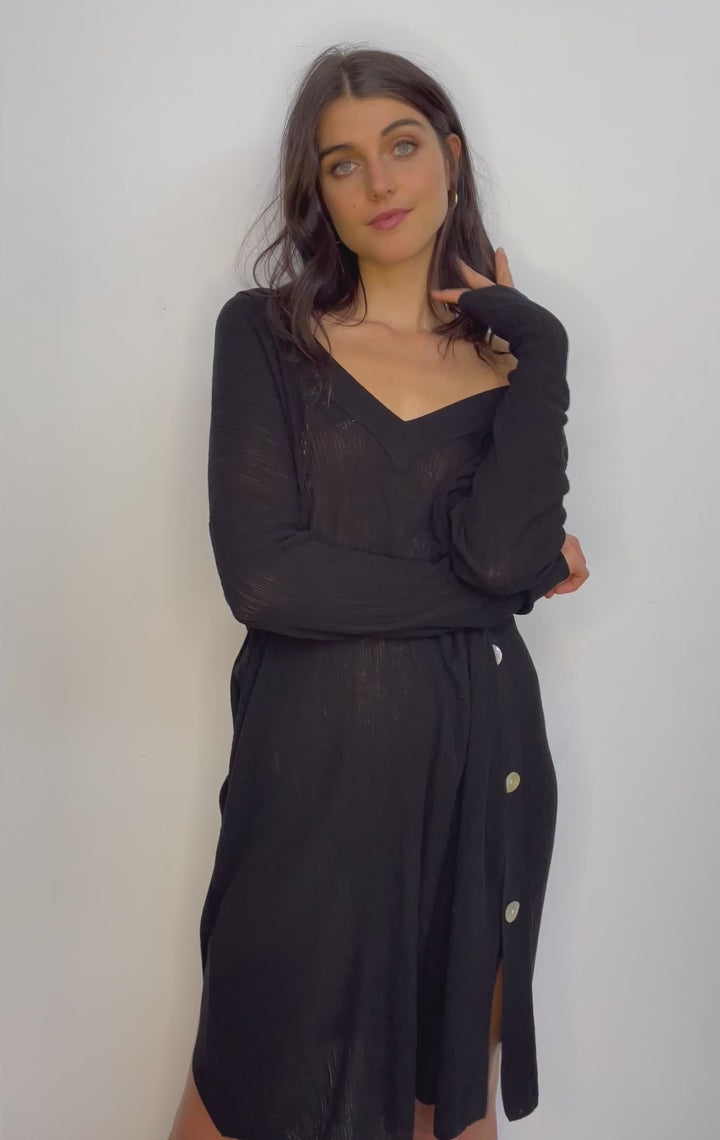 Our Side Button Tunic looks equally good on its own or styled with pants. It's cut from a textured linen and viscose blend in a flowy silhouette, that's fastened on its sides with four agoya shell buttons.