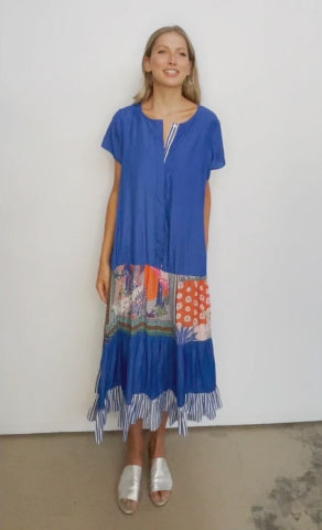Have fun in our playful Tiered Dress. This dress has a tiered skirt, side seam pockets, short, cut in sleeve and relaxed shaping.